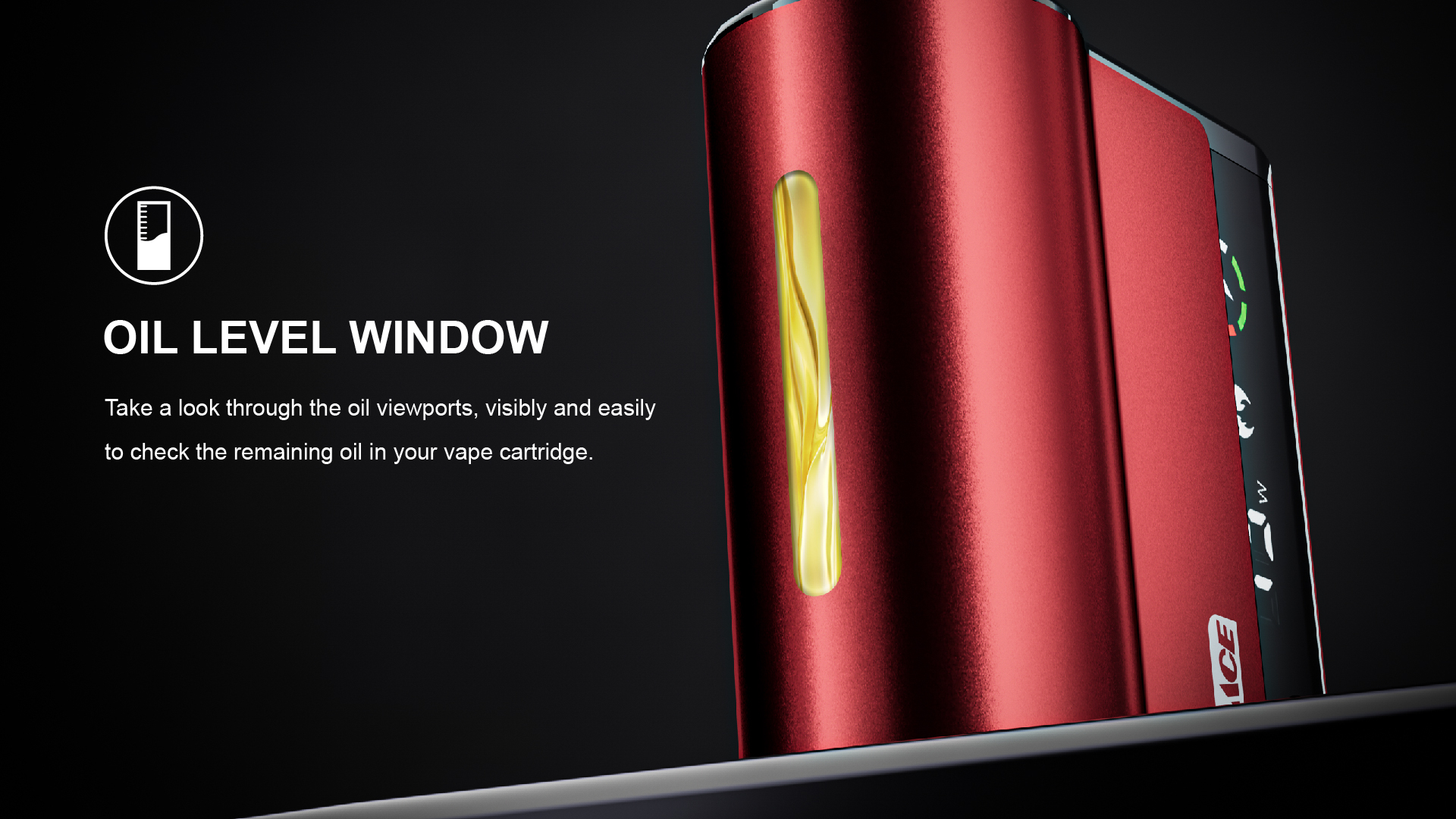• Oil Level Window: Monitor remaining concentrate easily
