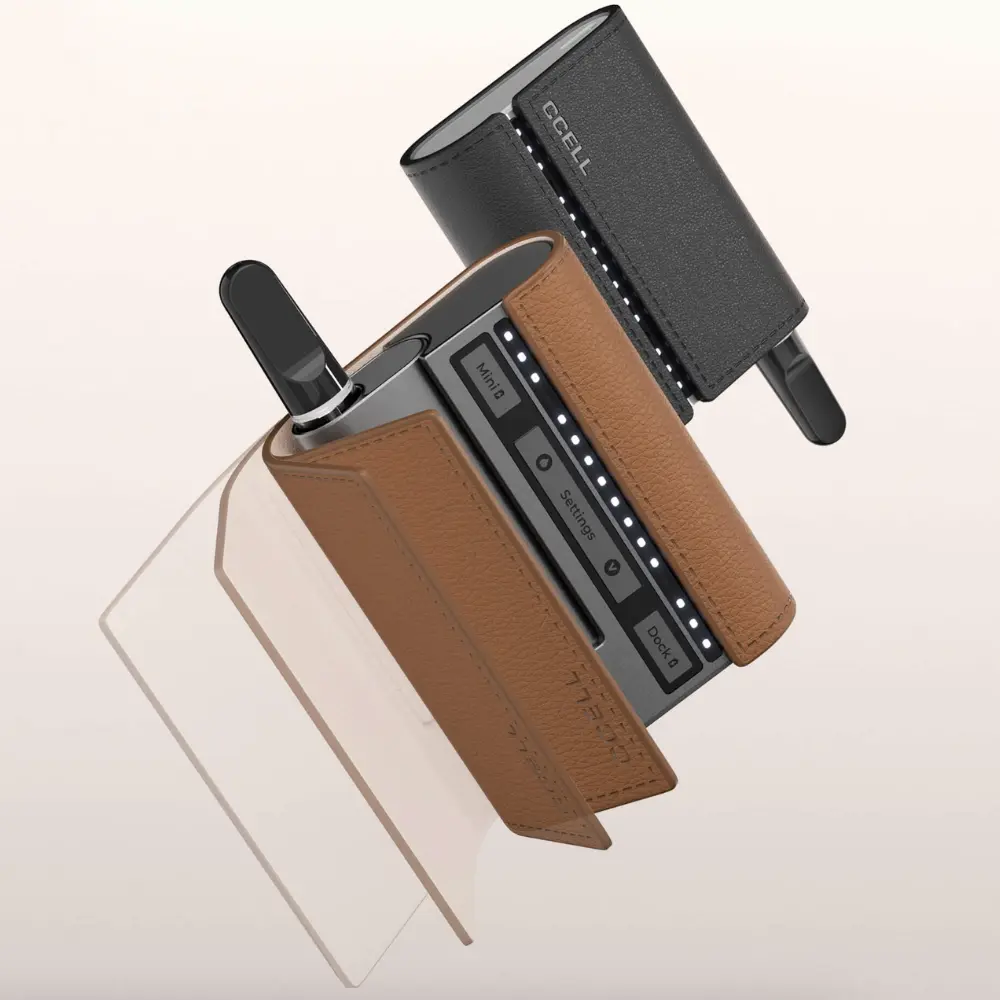 The CCELL Fino is a modular luxury 510 thread battery with 190mAh mini + 1000mAh detachable dock, leather case, 8 voltages, preheat, oil window, and inhale activation for sophisticated vaping.