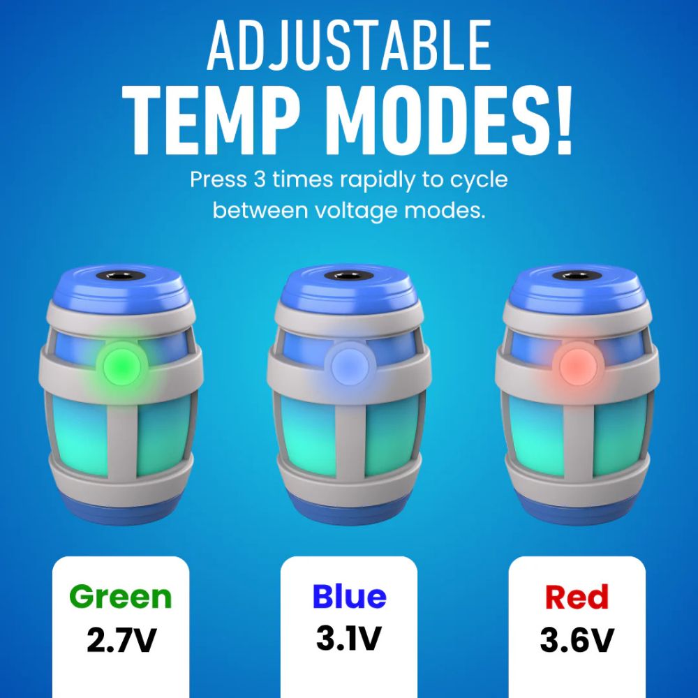 The Chugjamin by Smyle Labs is a novelty 510 thread battery shaped like a Fortnite Chug Jug – perfect for discreet, playful hits from 0.5g–3g cartridges. With inhale activation, 3 variable voltage settings (2.6V–3.8V), 10-second preheat, LED lights for chug jug effects, and fast USB-C charging on a 300mAh battery, it delivers smooth, flavorful vapor in a compact, keychain-ready design that’s as fun as it is functional.