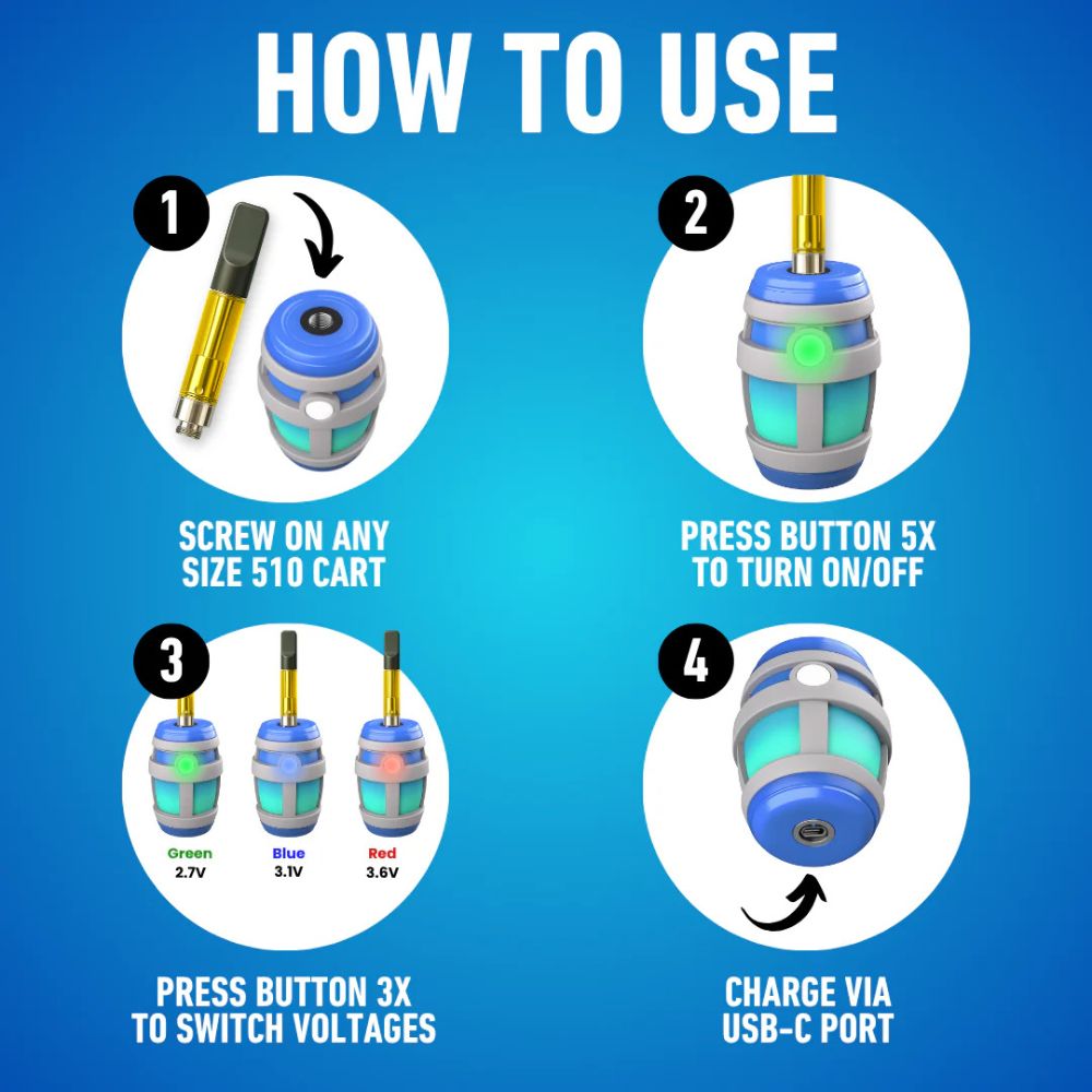 Discover more playful designs in our vape pens and cartridge batteries collection, explore the full range of 510 thread batteries, or check out other novelty 510 batteries and buttonless auto-draw vapes.