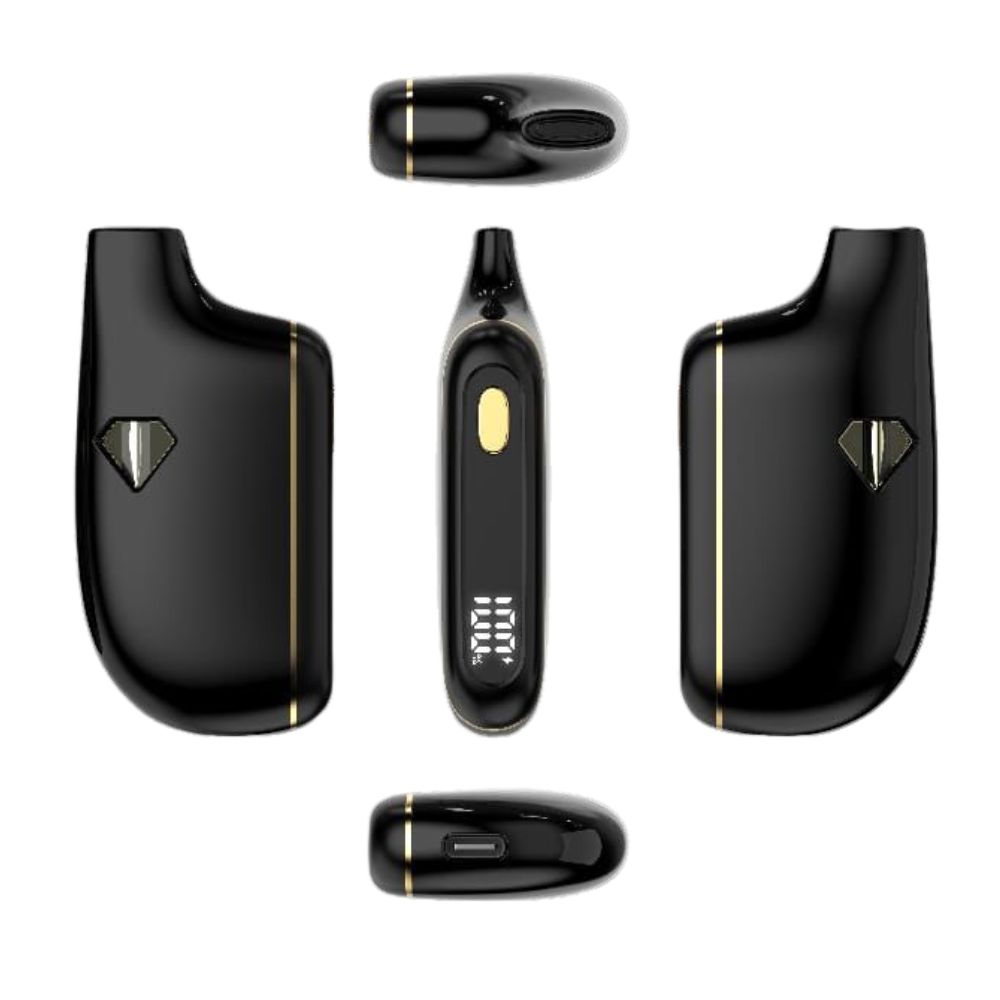 It has a sleek and curved design, with an oil viewing window so you can see how much oil you have left. The LED display screen will indicate your battery level. There’s a USB-C charging port – Simply plug in a phone charger to power back up to full juice! The device has a handy pre-heat feature, which delivers smooth hits even from thicker oils!