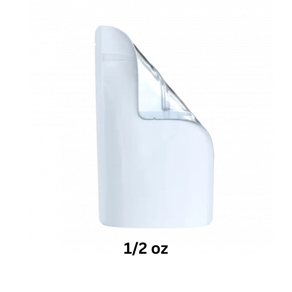These bags are solid white on one side and clear on the other. You can see through one side of the package. This lets you view the contents of your stash bag.
