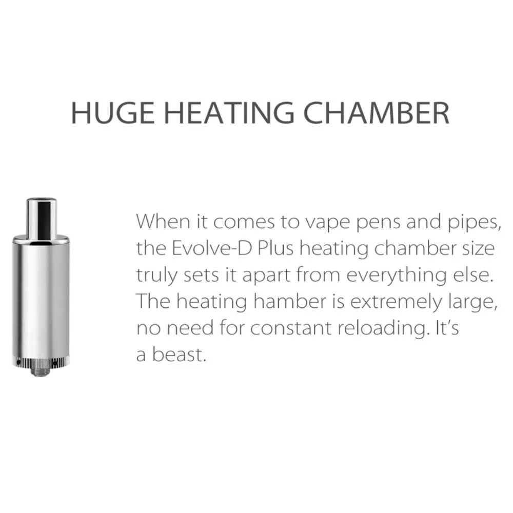 The Evolve D Plus is the newest dry herb vape pen from Yocan. It builds on the success of the Yocan Evolve D and brings some useful new features. It is powered by the 1,100mAh battery from the Evolve Plus, which almost doubles the battery capacity of the Evolve D. It has a new dual coil that has 12 wraps of wire to allow for better heating and stronger vapor production. The dry herb chamber really sets it apart with its huge capacity. It also has the convenient stainless storage container in the base of the battery.