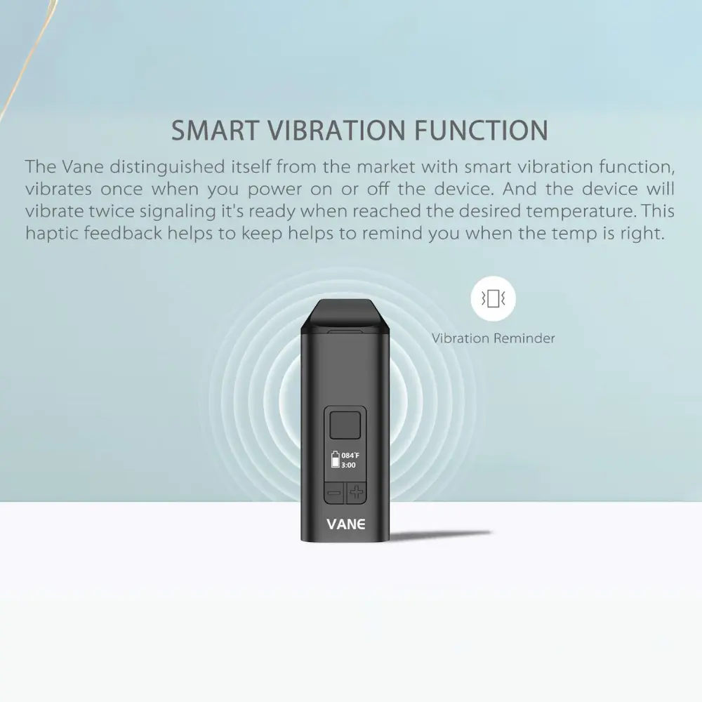 The Yocan Vane is a compact portable dry herb vaporizer with convection heating, OLED temperature control (200°F–480°F), fast 30s heat-up, and 1100mAh battery for flavorful, discreet sessions.