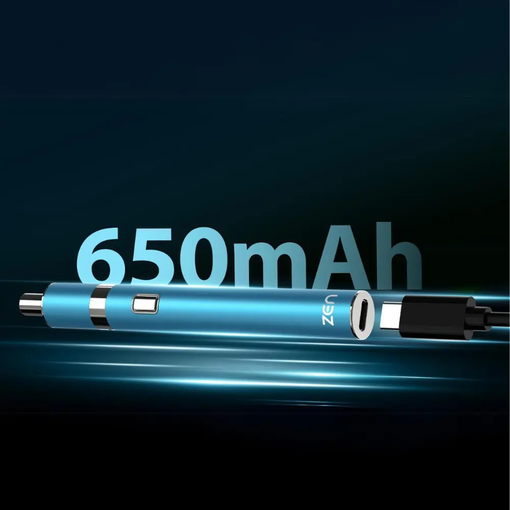 The Yocan Zen is a sleek, lightweight wax pen. The stainless steel body is durable and hard-wearing and the Zen is available in a range of colors. It has a 650mAh battery capacity which is USB-C charging (cable included).