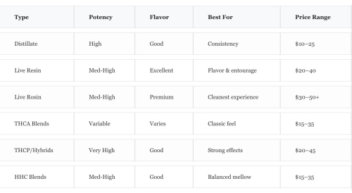 - Best Cheap / Under $20: Hemp Delta-8 or THCA blends—potent, tasty, budget-friendly